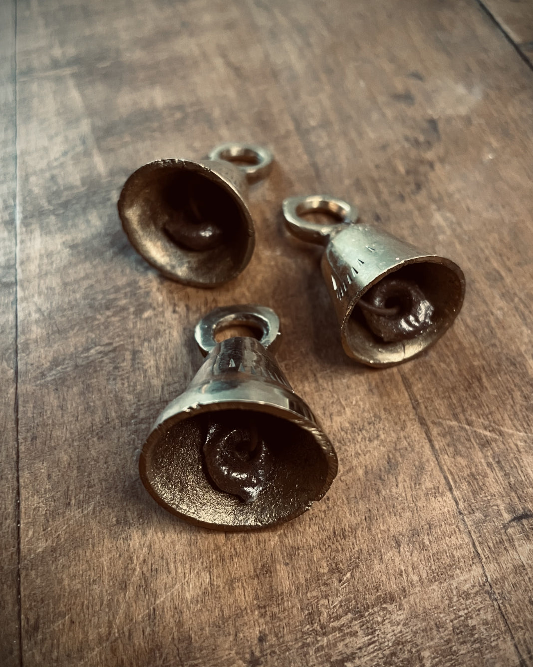 Bells and chimes have used worldwide throughout history and used in charms, decoration, and jewelry for calling in benevolent spirits, as well as for casting out illness, bad luck, and malevolent spirits. These beautiful brass bells are sourced from India and may be hung upon strings in a doorway where their tinkling will repel negative energy. Alternately you could add them to charms, jewelry, and conjure bags.