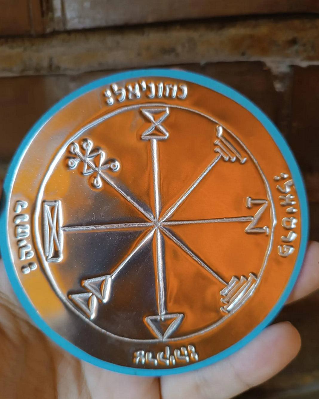 Solomonic pentacles are inscribed in metal in the day and hour of their associated planet and adhered to wooden bases painted in appropriate planetary colors. They may be consecrated and carried, used as a base to burn candles, or in a variety of other ways subject to the magical imagination. To learn more about working with Solomonic seals, see The Sorcery of Solomon and The Pentacles of Solomon.