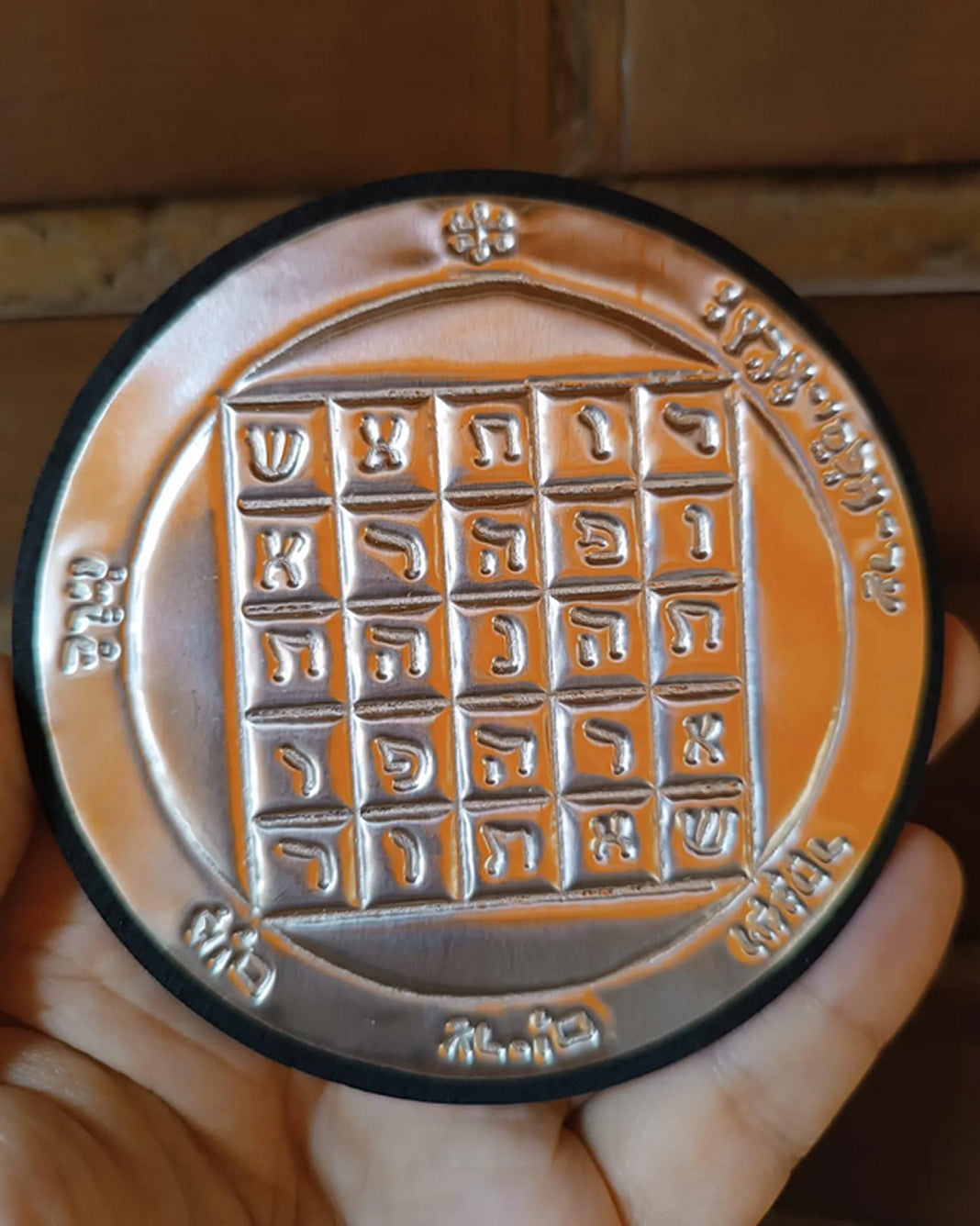 Our Solomonic pentacles are pressed in metal and adhered to wooden bases painted in appropriate planetary colors. They may be consecrated and carried, used as a base to burn 7 day candles, or used in a variety of other ways subject to the magical imagination. To learn more about working with Solomonic seals, see The Sorcery of Solomon and The Pentacles of Solomon.