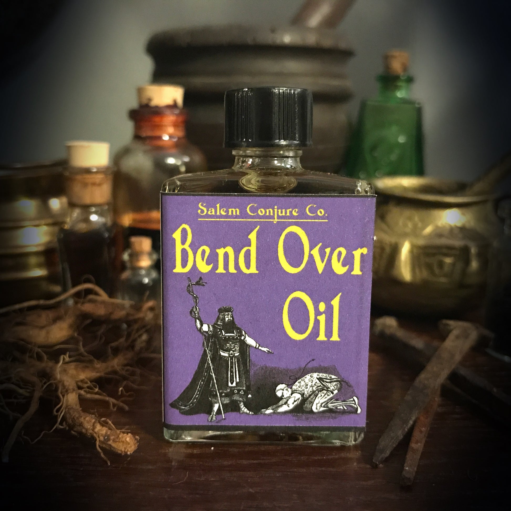 Bend Over Oil is based upon traditional formulas of domination and subjugation. It is one of the commanding formulas found in hoodoo which is designed to get others to follow your lead, bow to your will, and do as you wish. For those troublesome neighbors who won’t shut off their music, the boss who keeps breathing down your back, or the in-laws who keep meddling, Bend Over Oil is the solution. Just a bit and they’ll be bending over and kissing your feet.
