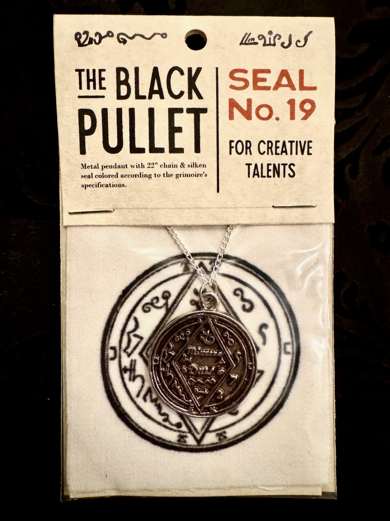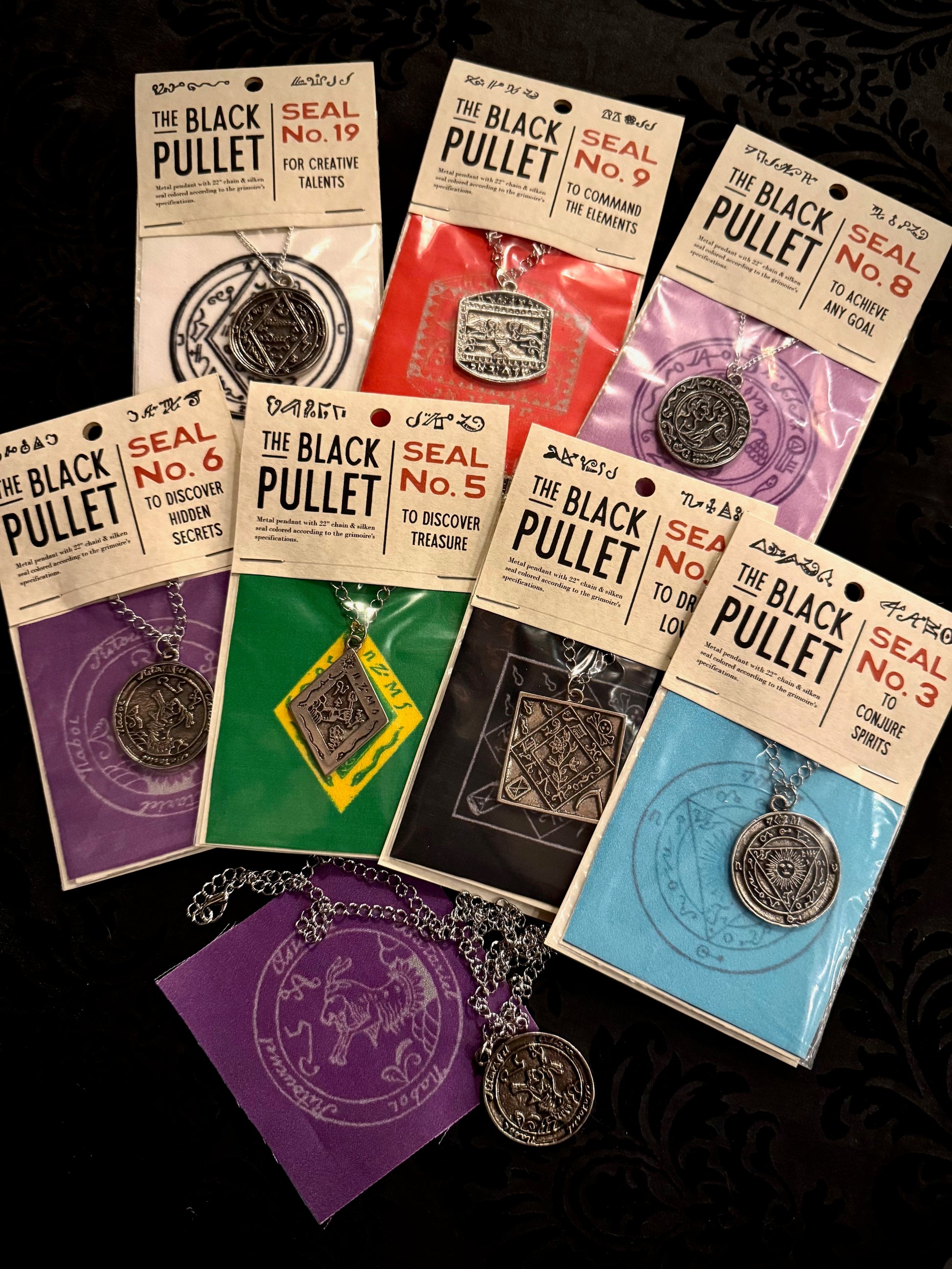 Our set offers the seal in medallion form, on a 22" chain, and also includes a printed satin patch which may be carried, stitched onto clothing, or incorporated into a charm bag or other manner of spell working.