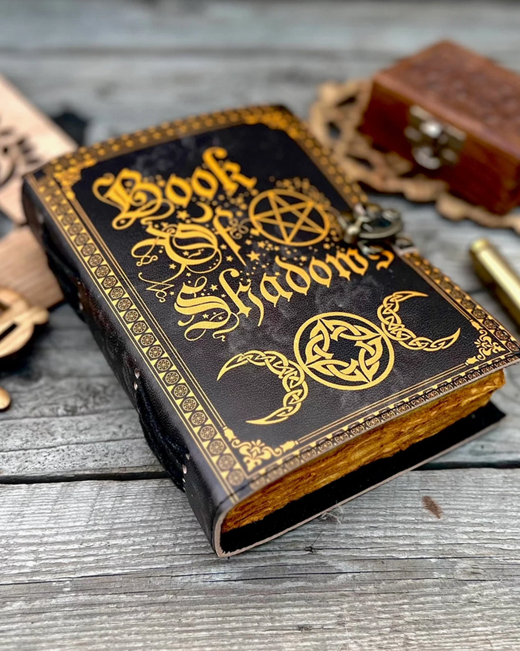 This 5x7" leather journal has a vintage-styled metal latch and 200 blank pages of 120 gsm antiqued paper with deckled edges.