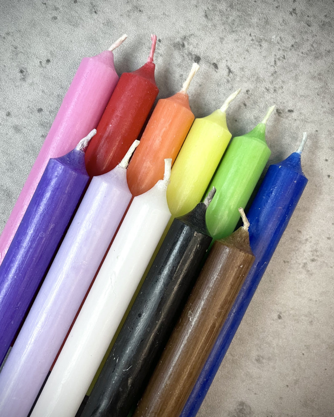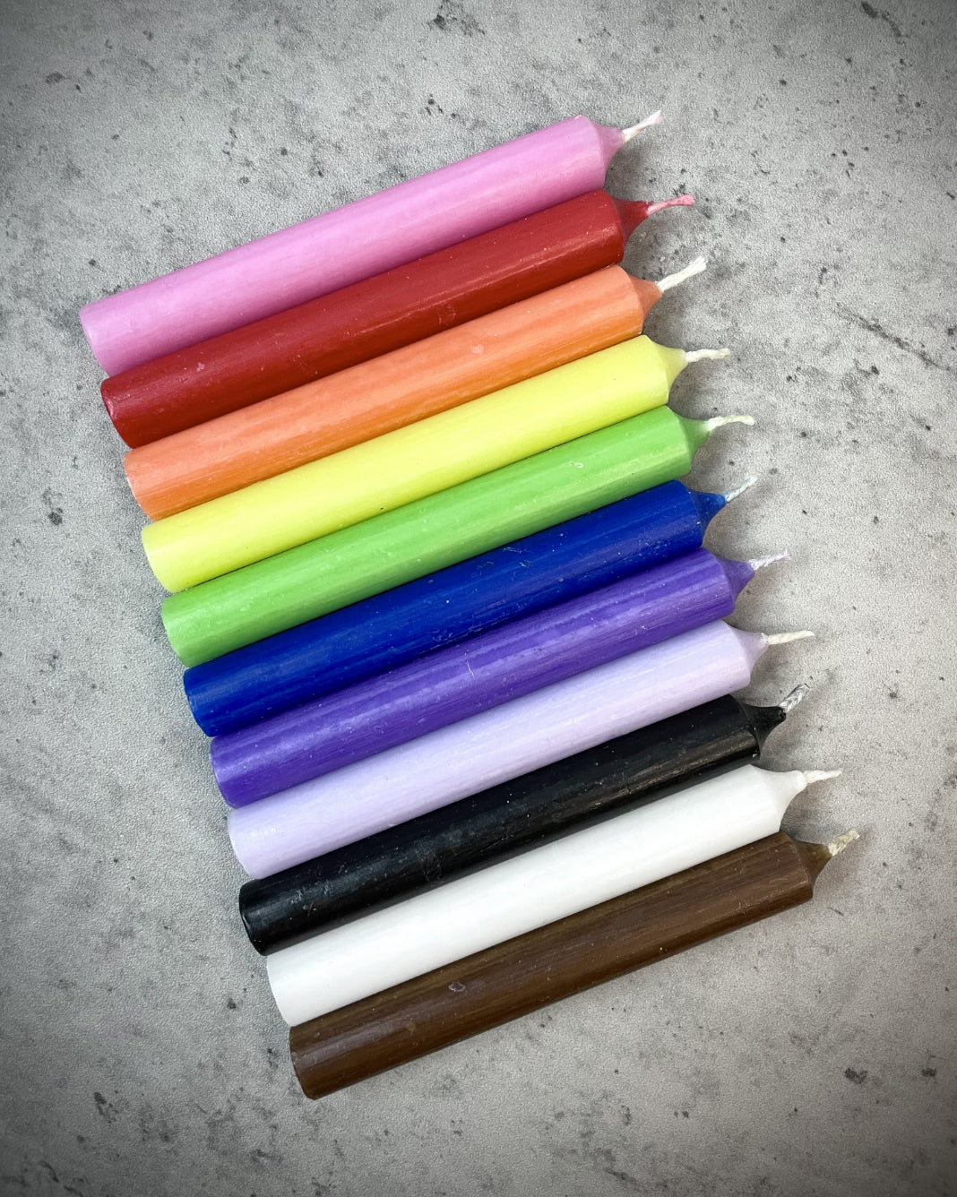 Our 4" chime candles are perfect for burning during a single spell or meditation, when you need to burn a whole candle but don't have all day! Choose a color that harmonizes with your intention and anoint it with a magical oil to intensify the effect and guide the outcome.
