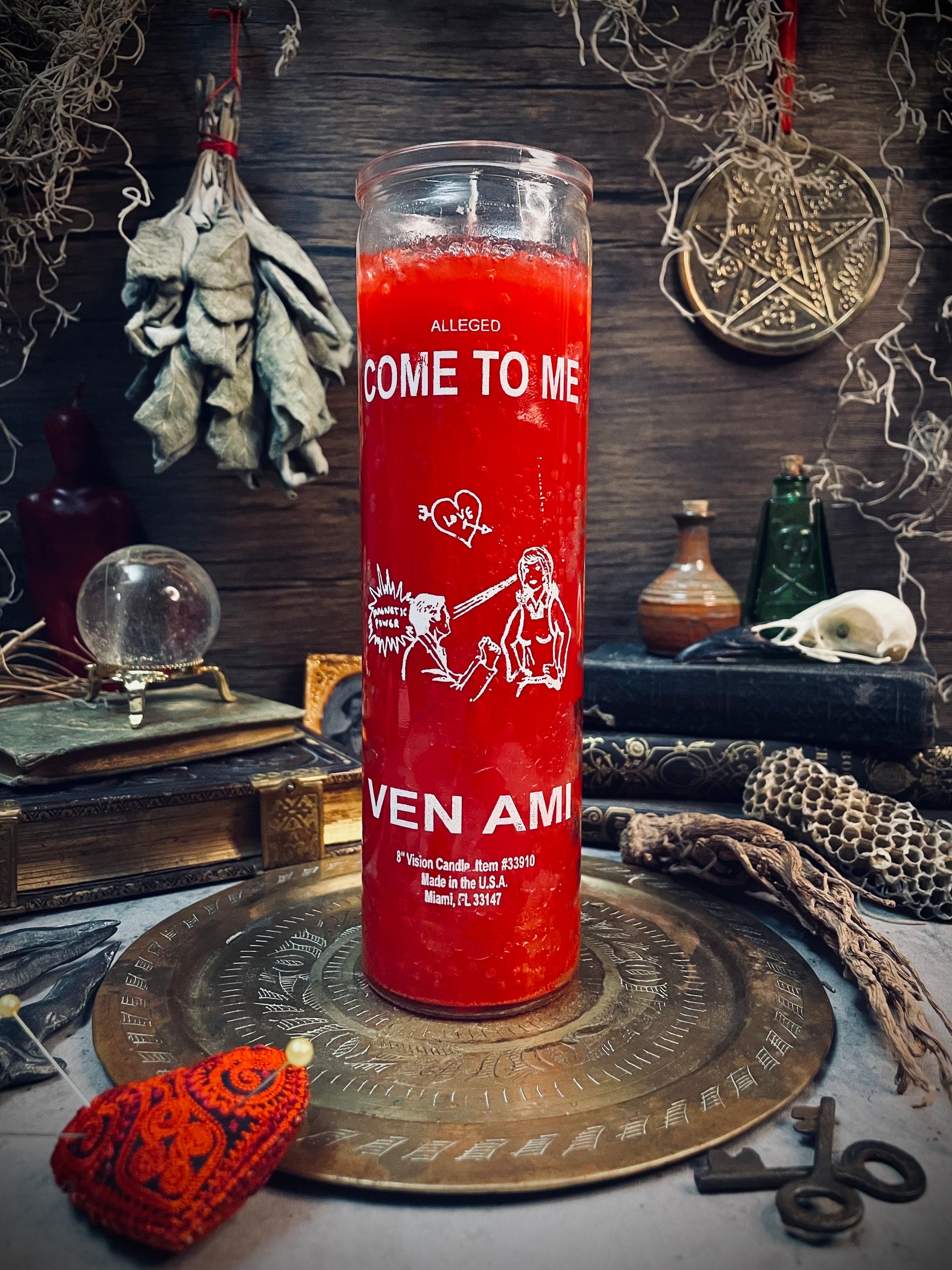 Draw your love to you with a surge of undeniable magnetism with the Come To Me 7 day candle. This red candle may be anointed with Love Drawing, Come To Me or Follow Me, Boy! oil.