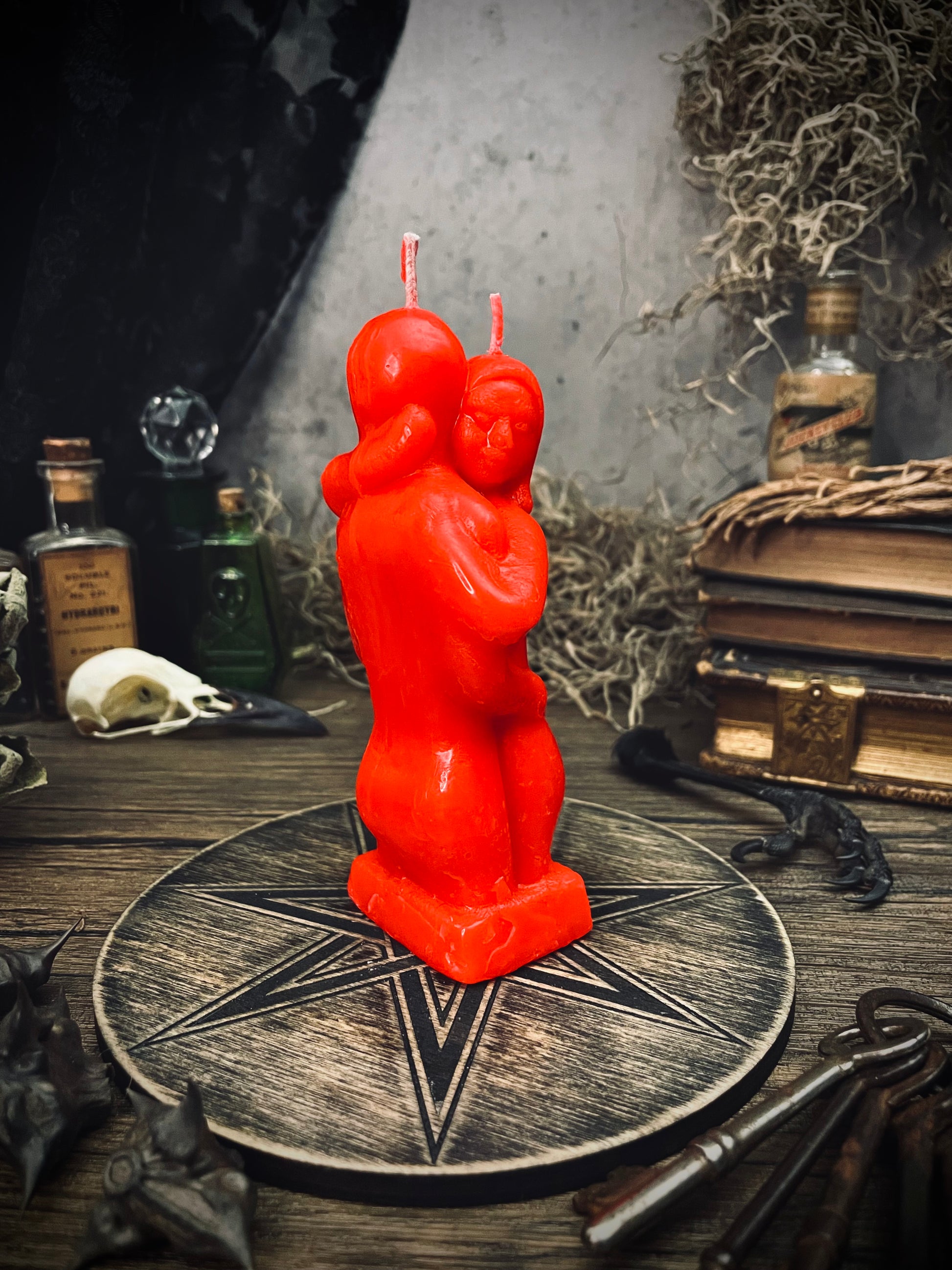 This red lovers candle is best used for workings within established relationships to strengthen the bonds of love or reignite the fires of passion. The candle may be carved with the names of the both members of the couple and then dressed with Love Drawing or Cleopatra Oil.