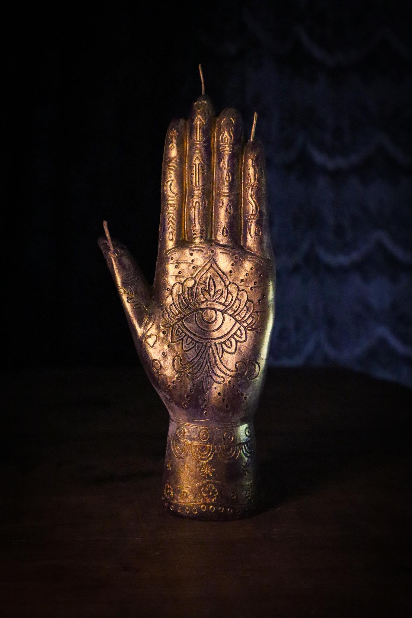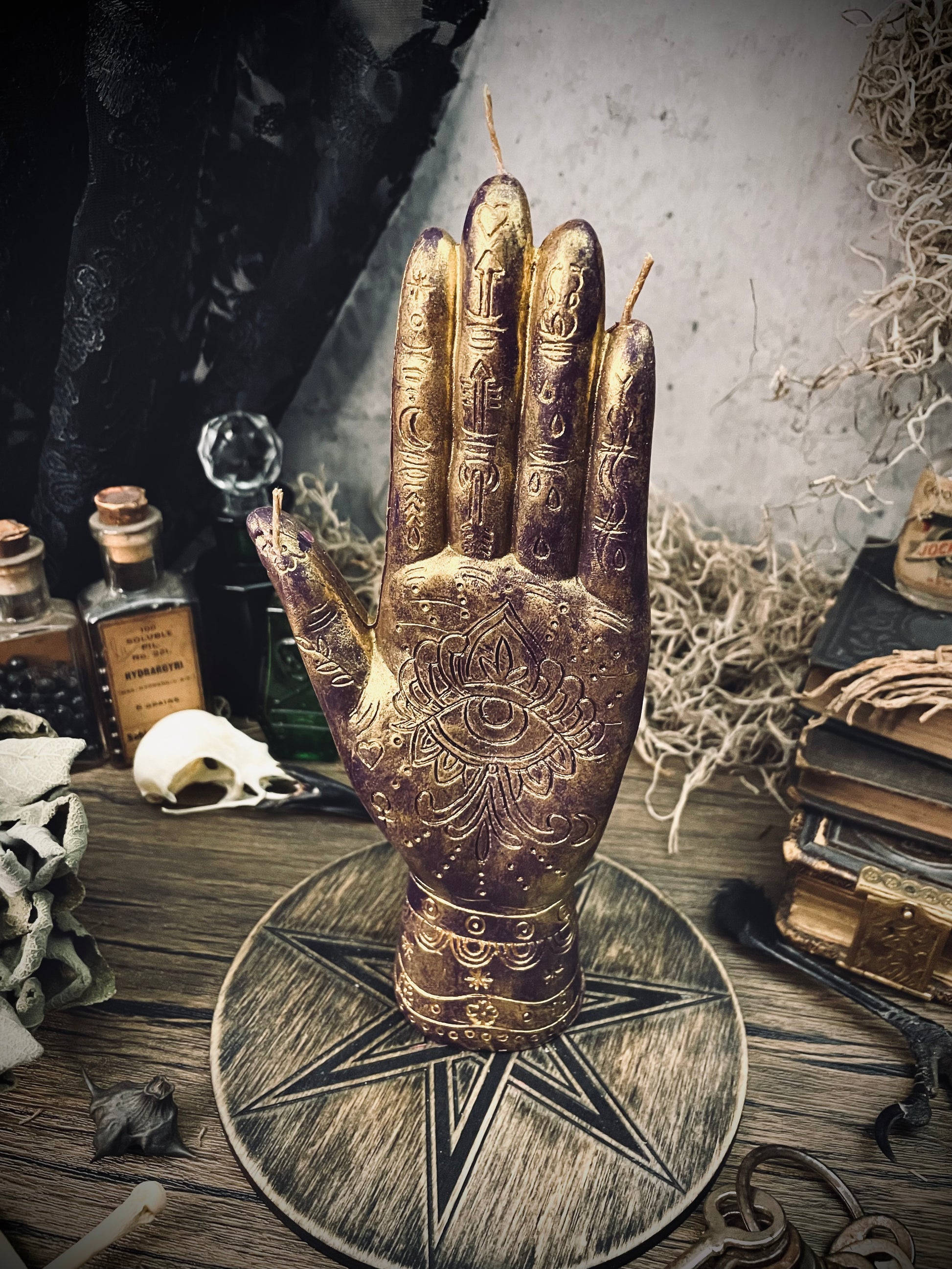 These lucky purple candles are elevated by a layer of gold mica. They may be dressed with All-High Conquering Oil or Fast Luck Oil for works of success, overcoming and good fortune.
