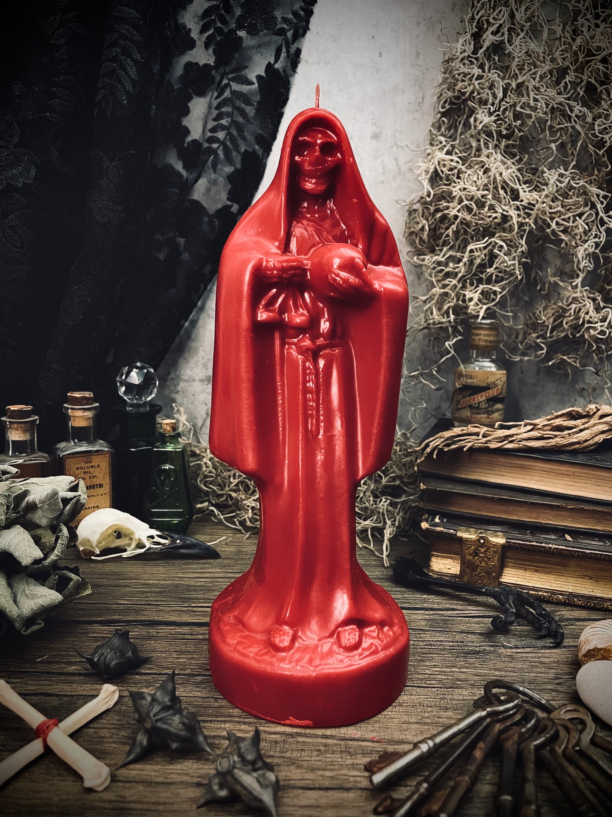 The Red Santa Muerte is commonly called upon in spells of love and romance, attraction, beauty, and prosperity.