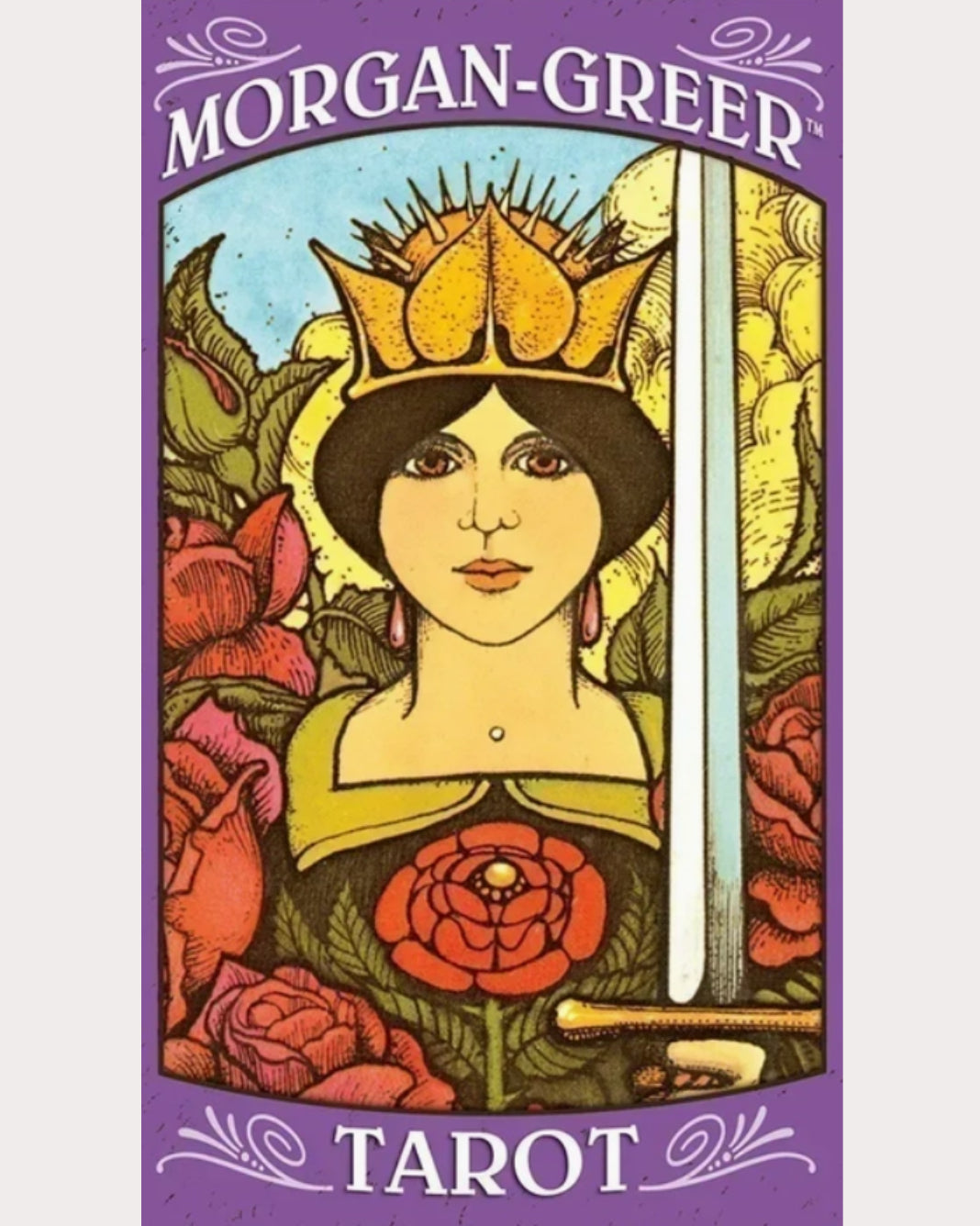 Based on the structure of the Rider-Waite Tarot, this uniquely expressive deck features magical imagery presented in deep, saturated colors. The borderless 78-card deck allows the details of tarot scenery and symbolism to be viewed from a close, intimate perspective. The Morgan-Greer Tarot draws the reader into its evocative artwork. When laid out in a spread, the full scenes on borderless cards create a beautiful picture. The Morgan-Greer Tarot is the first modern tarot deck based upon the combined research of tarot leaders Arthur Edward Waite and Paul Foster Case. The Case book was used as a primer by artist Bill Greer in choosing the colors for the Morgan-Greer deck, so as to "create an emotional reaction to each card even before the image could be looked at in depth."