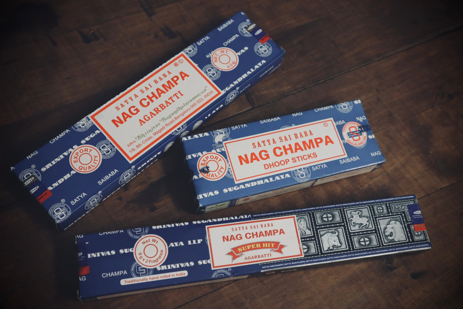 All fragrances are available in the traditional stick format, while the classic Nag Champa is also available in a pack of 10 shorter, thicker dhoop sticks.
