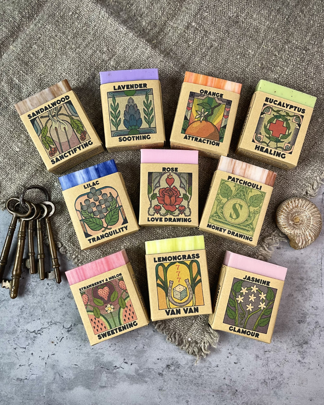 Increase your personal appeal and bend decisions in your favor with Salem Conjure Co. Strawberry & Melon Sweetening Soap. Made with natural plant oils, this bath bar is enriched with shea butter for a fragrant and luxurious lather. The packaging, inspired by vintage curio catalogs, includes a short psalm that may be prayed during use in a spiritual bath for sweetening. Sweetening Soap may be used in conjunction with our Crown of Success Oil or Command and Compel Oil depending on the situation.