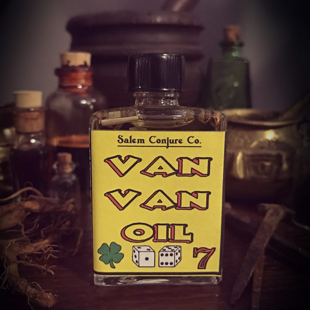 Salem Conjure Co. brand Van Van Oil is a traditional formula of five Asian grasses which is renown for clearing crossed conditions, killing jinxes, and for spiritual cleansing. Additionally Van Van Oil is said to bring good luck in matters of money and love. For this reason it is often used in prosperity, romance, gambling and business success spells.