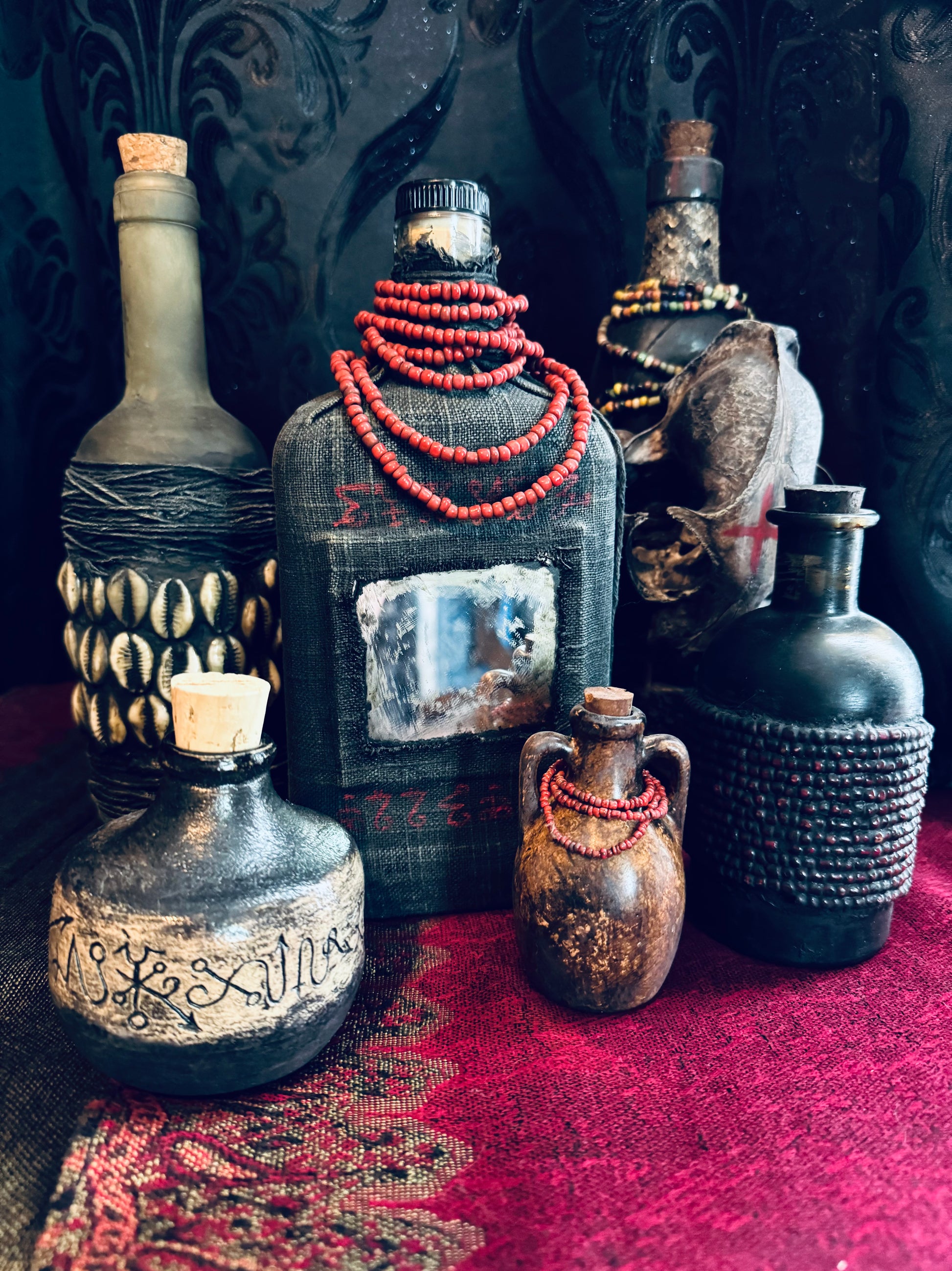 The Second Part of our course will focus upon the crafting of magical objects. Here we will explore ways of collecting, conjuring and working with magical materia. We will also explore the creative and practical work of crafting effigies, fetiches, and other forms of spirit vessels. This will include "hands on" work and demonstrations of diverse methods for both designing and crafting a variety of spirit vessels.