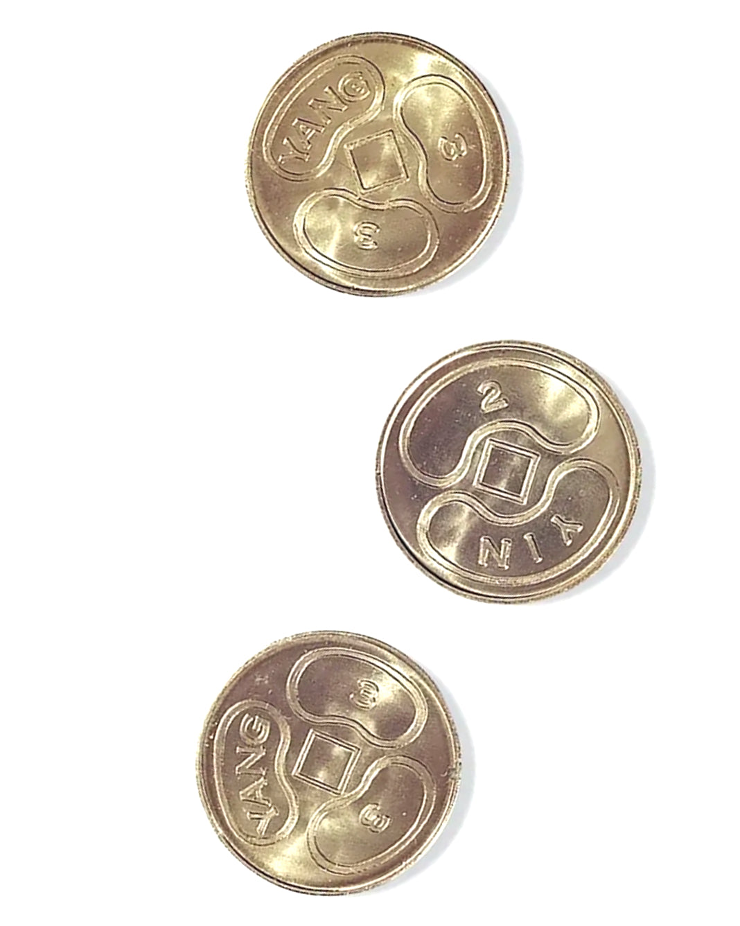 This set of three coins may be used in traditional I Ching hexagram divination or in other methods of sortilege.