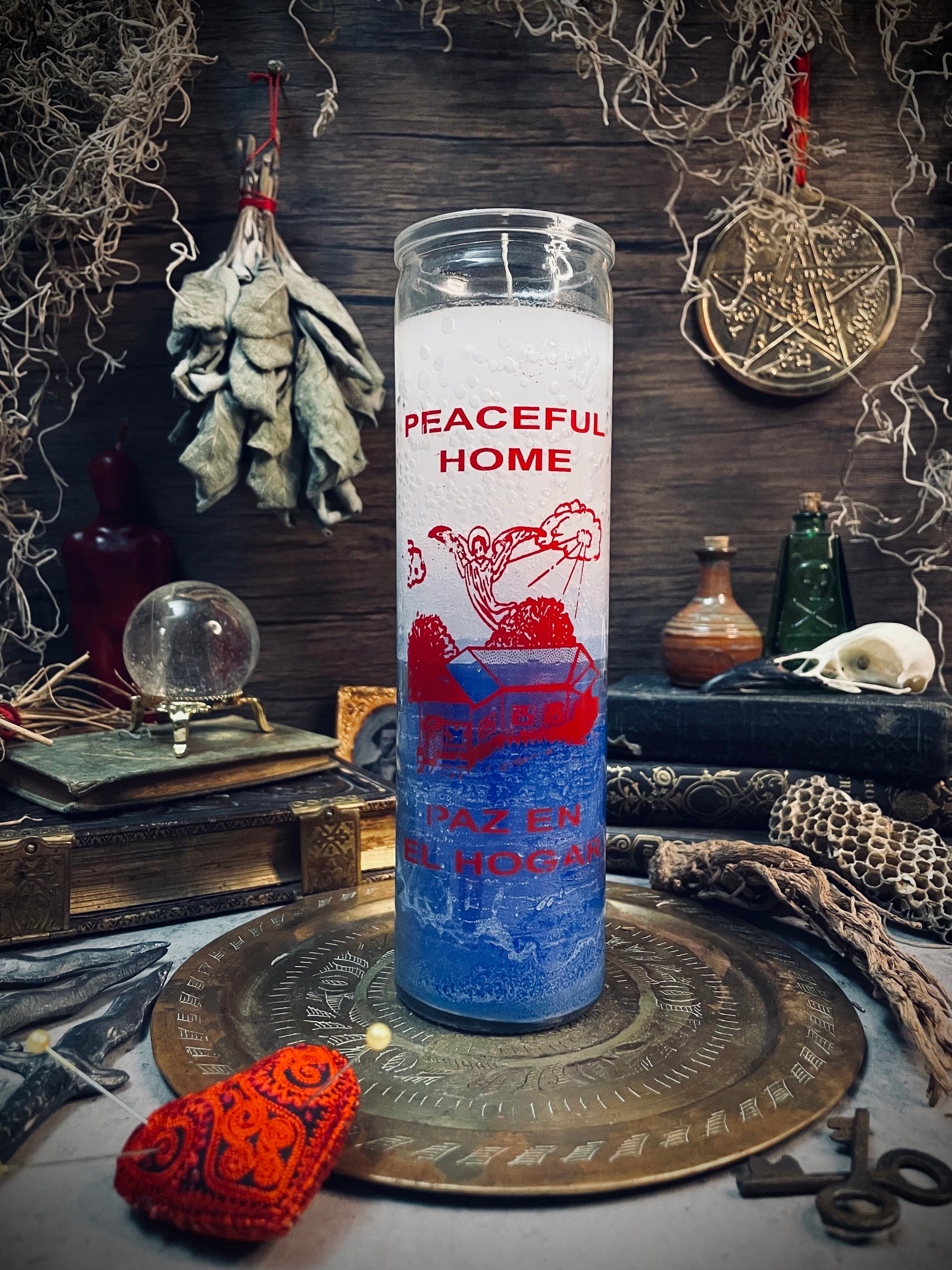 Dress this candle with our Happy Home Oil and burn it in the center of your home, in the kitchen or at a hearth, to promote peace between family or roommates. It may be used to enhance and preserve an existing state of happiness in the home, or as a spell against arguments, strife and disharmony.