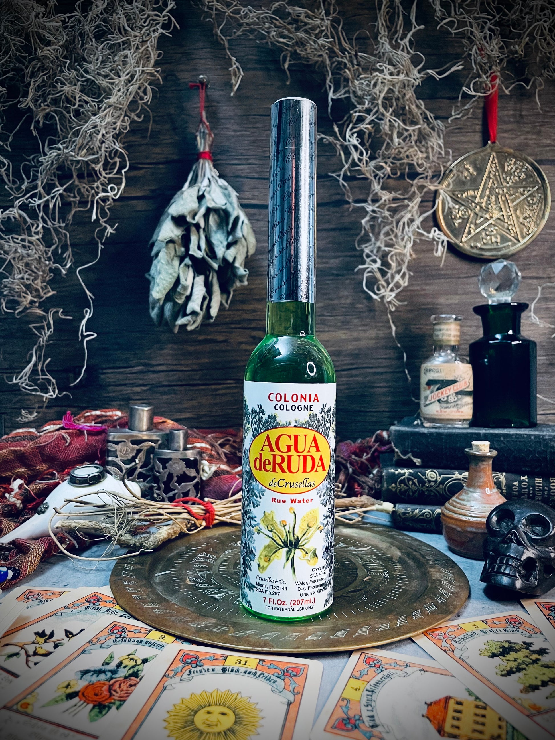 This eau de cologne, like the herb rue itself, is used for protection, good fortune, and blessings. It may be added to spiritual baths, washes, and used for anointing oneself and dressing items for ritual.