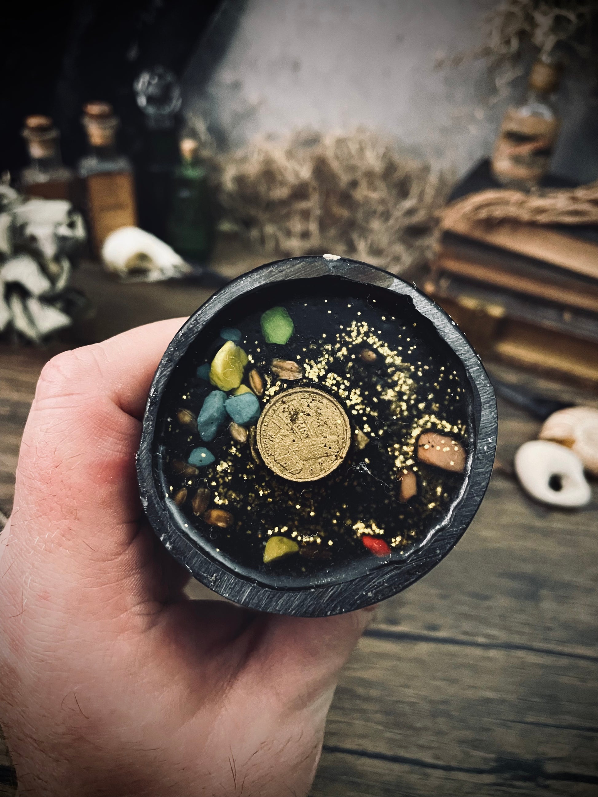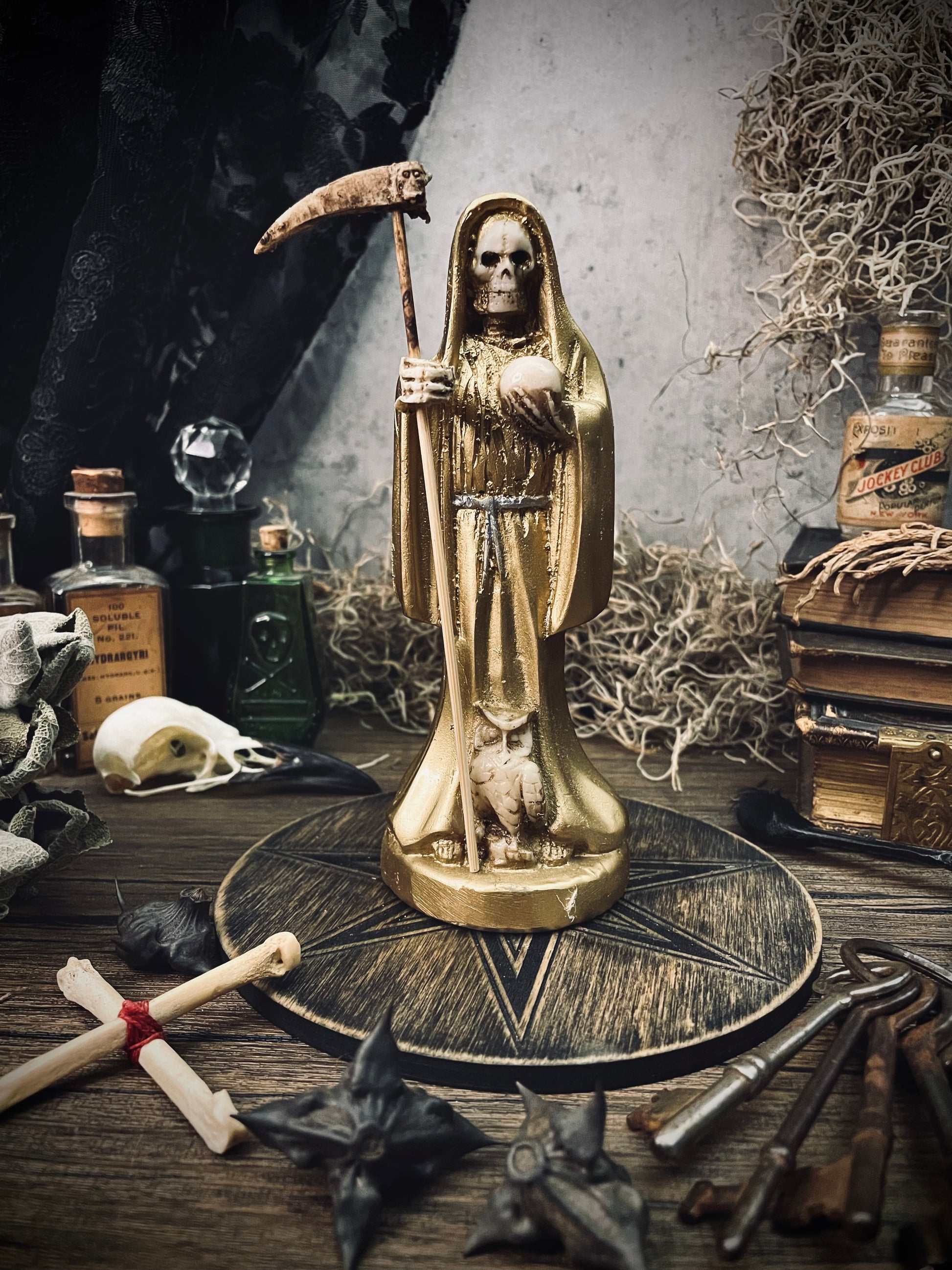 The Gold Santa Muerte is commonly worked with in spells for money, good fortune and prosperity.