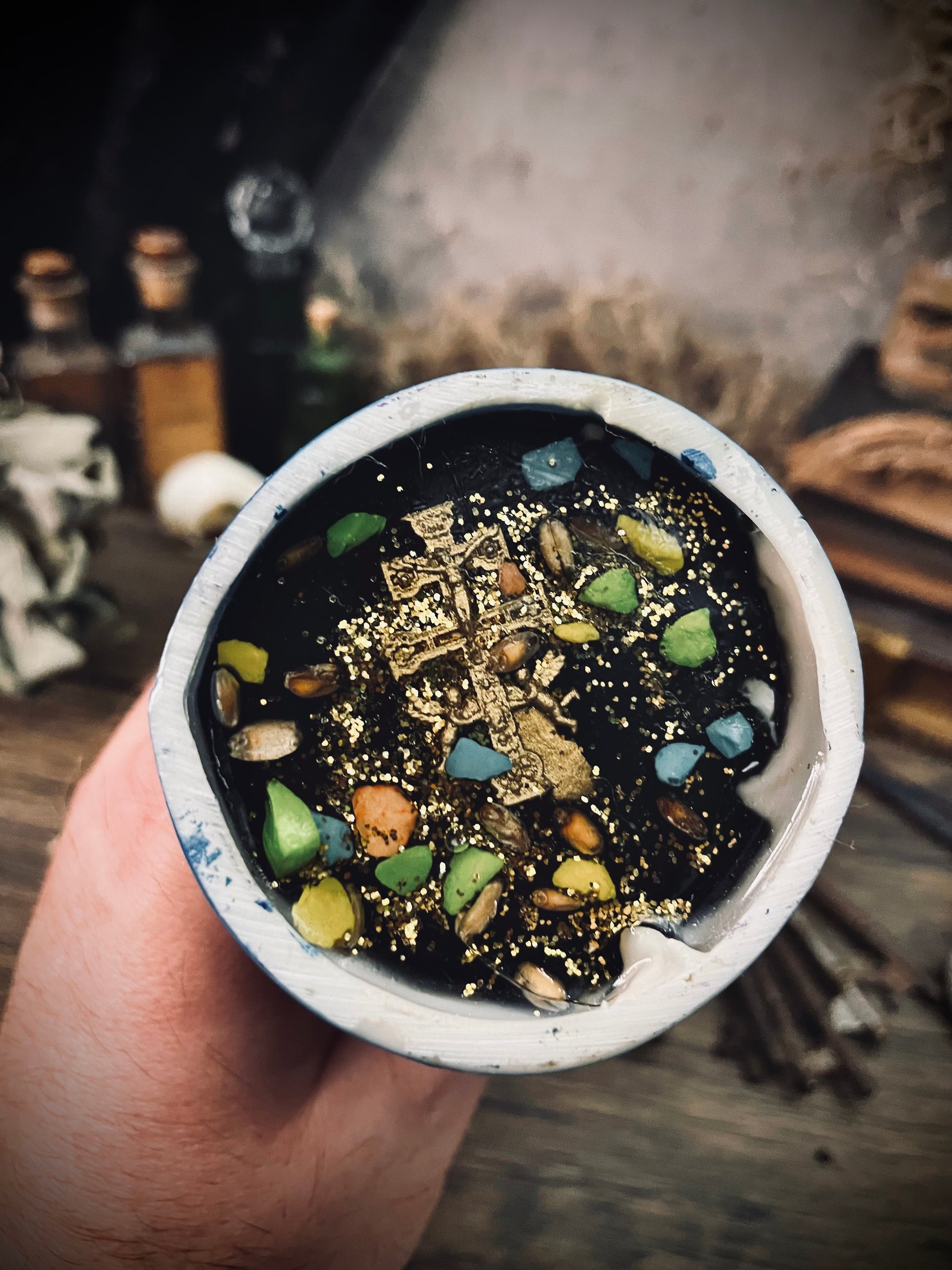 The Black Santa Muerte and the associated candle are commonly used in works of crossing, cursing, binding, and revenge, as well as in works of powerful protection from such spells.