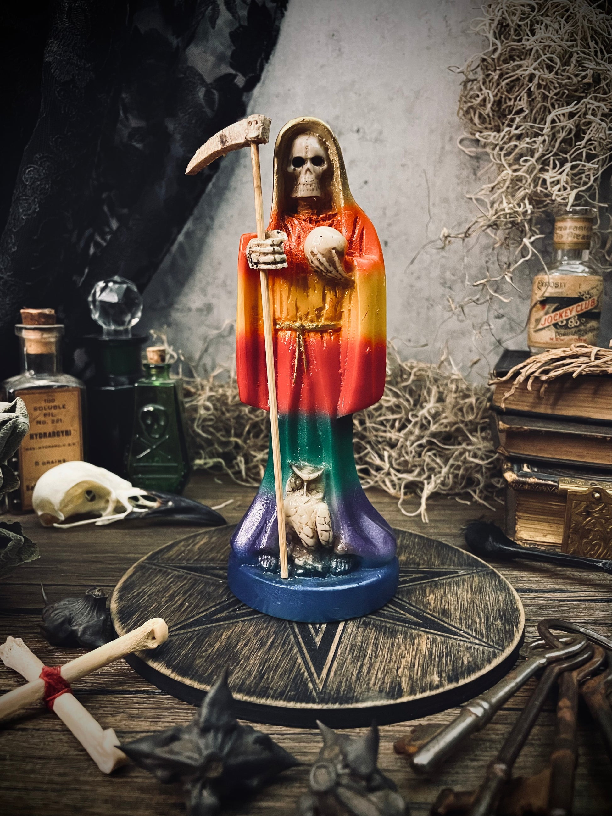The Seven Colored Siete Potencias Santa Muerte statue calls upon all the standard working colors of Santa Muerte, making it a versatile statue for any and all workings with the Saint of Death.